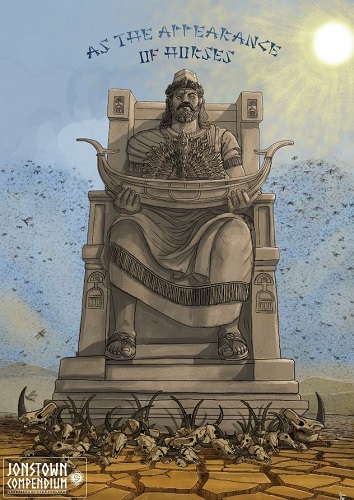 This lengthy campaign (162 pages, plus a 49-page booklet for NPCs) is organised into two parts. In the first, the adventurers investigate the nature and origin of the locust plague, exploring the temples and sewers of New Pavis, negotiating with the troll clans and the Garden, and fighting in the deadly ruins of the Big Rubble to retrieve vital intelligence. The second part provides rules and information on organising expeditions in the Wastes and will lead adventurers on a trail whose secrets they will have to unravel, confronting them with the ambition of a delusional Broo warlord and a ruthless nomadic war, until they sail beyond the pale of Time on a long-dead ship.