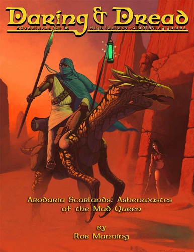 Daring & Dread CS (5E)-Abodaria Scablands: Ashenwastes of the Mad Queen is available through DriveThruRPG in PDF.