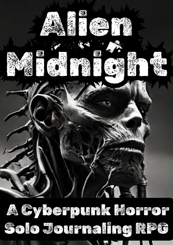 Alien Midnight: A Cyberpunk Horror Solo Journaling RPG is available through DriveThruRPG in PDF.