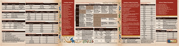 Included is a landscape, three-panel Gamemaster screen featuring all the critical information for in one place, from battles and hunts, to personal combat, to the melancholy and madness of Passions, and more!