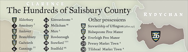 Inside you’ll find a gorgeous poster-sized map of Britain in the Age of Arthur, illustrated by Francesca Baerald, and a map of the Hundreds of Salisbury County.