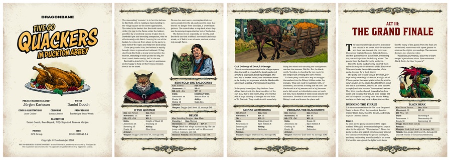- FIVE GO QUACKER IN DUCKTON ABBEY is a 36 page Dragonbane adventure for 3-5 players.
