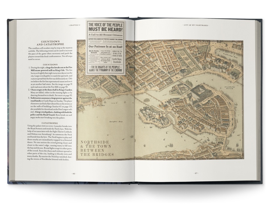 City of My Nightmares is set in 19th century Stockholm but can be adapted to London, Prague or any Gothic metropolis of the era. This beautifully illustrated book includes a separate large map of Stockholm and a huge newspaper handout.