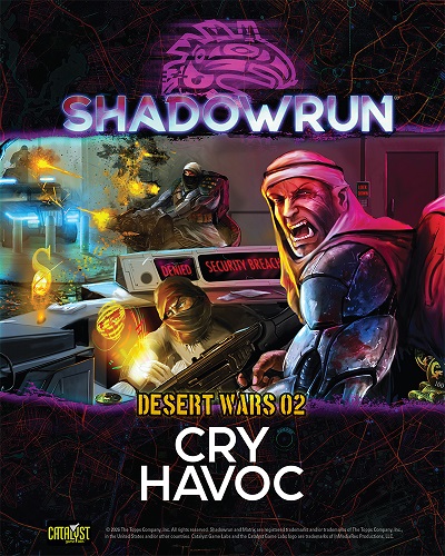 Cry Havoc is the second e-book of Shadowrun Sixth World’s Desert Wars series. Here the spotlight is squarely focused on the mercenaries, the reality of their lives, and what sacrifices they accept in order to make warfare and warfare entertainment of Desert Wars so profitable.
